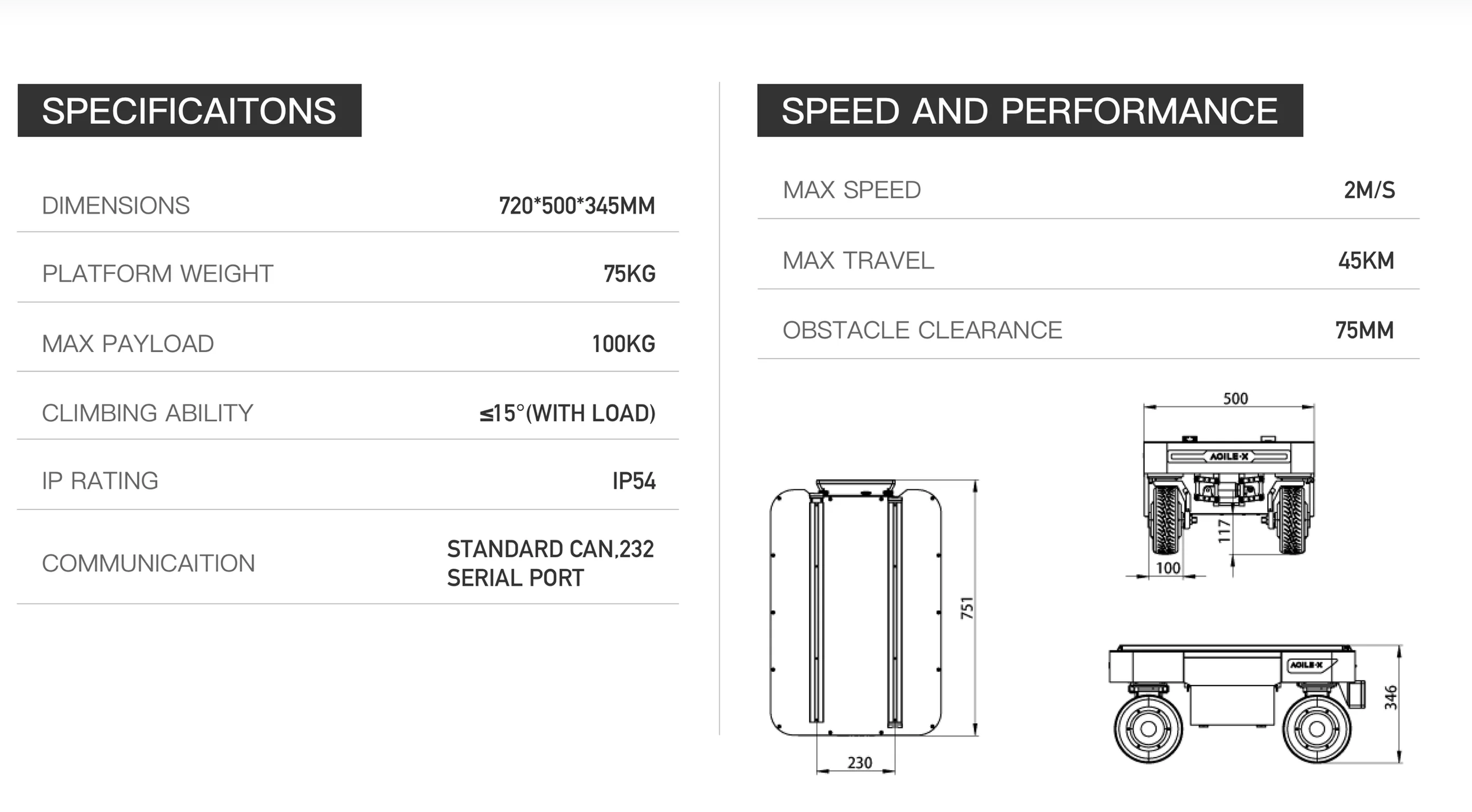 Equipped with an independent four-wheel suspension system, the Ranger platform handles rough terrain with ease, delivering confident mobility across both indoor and outdoor environments. Both Ranger models include aluminum T-slot rails for secure mounting of external sensors, payloads, and expansion kits. For integration and secondary development, they support CAN bus connectivity and provide an open-source SDK plus software resources for advanced functionality.